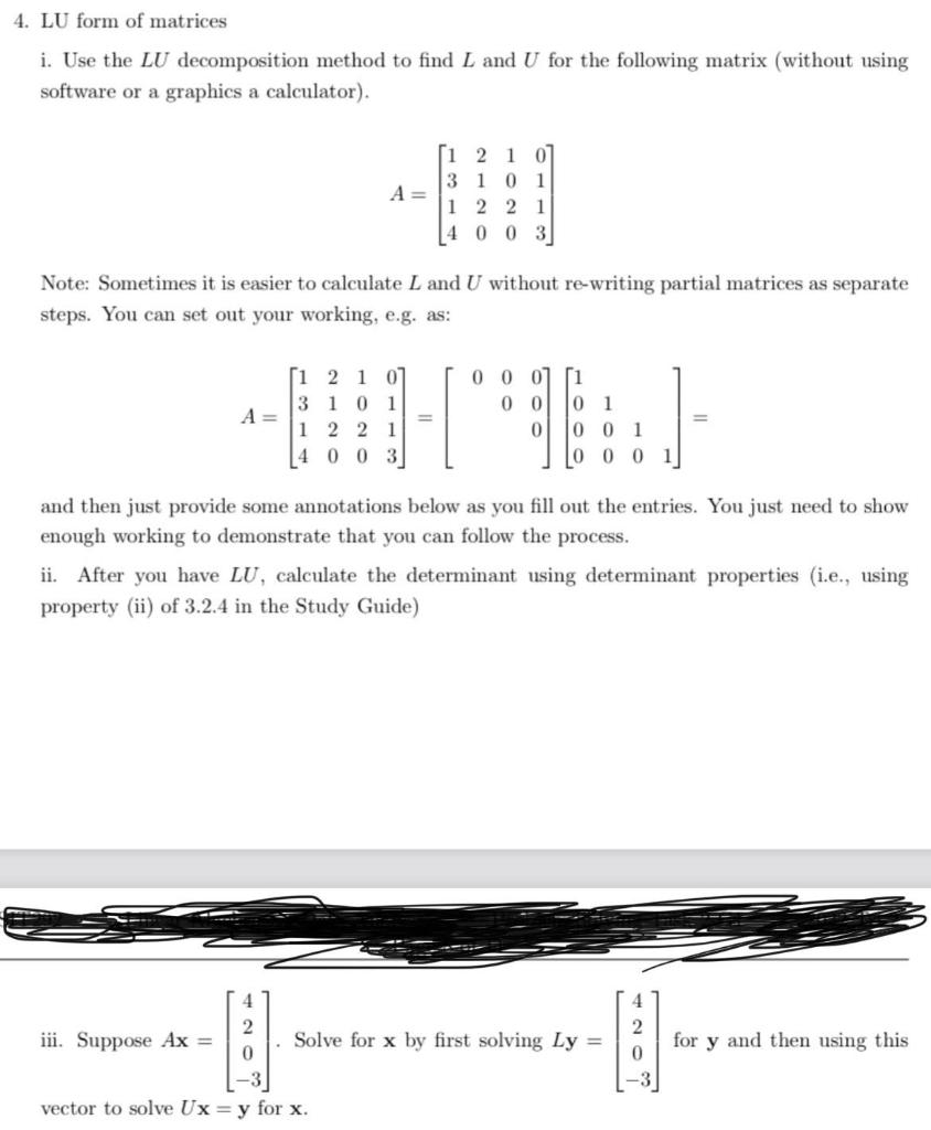Solved 4 Lu Form Of Matrices I Use The L U Chegg Com