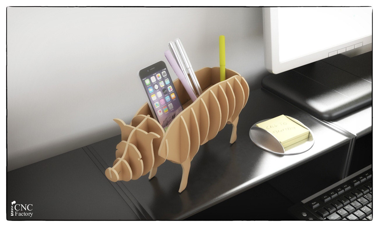 Schwein Stift Schreibtisch Schablone Cnc Schneidedatei Etsy De